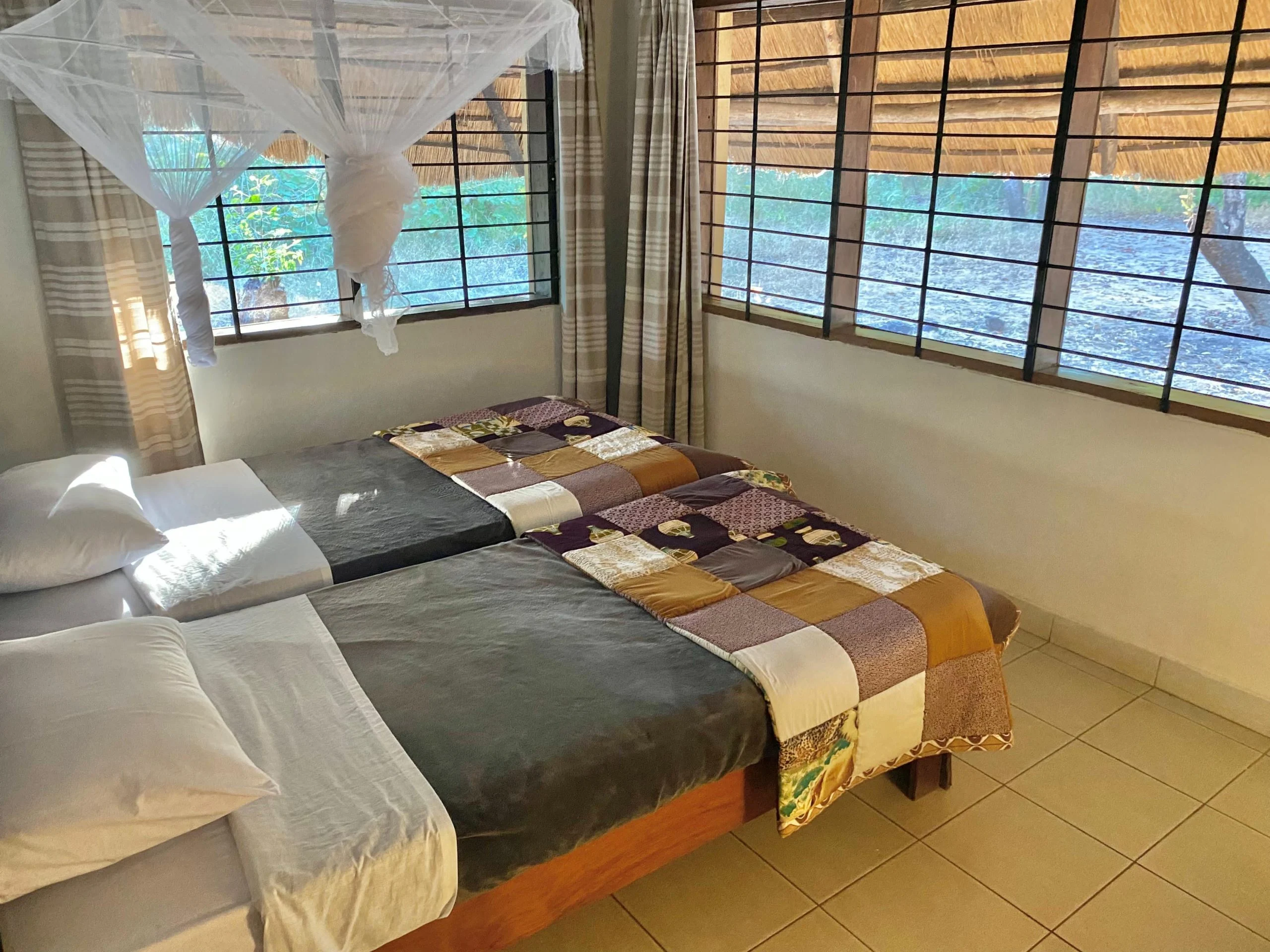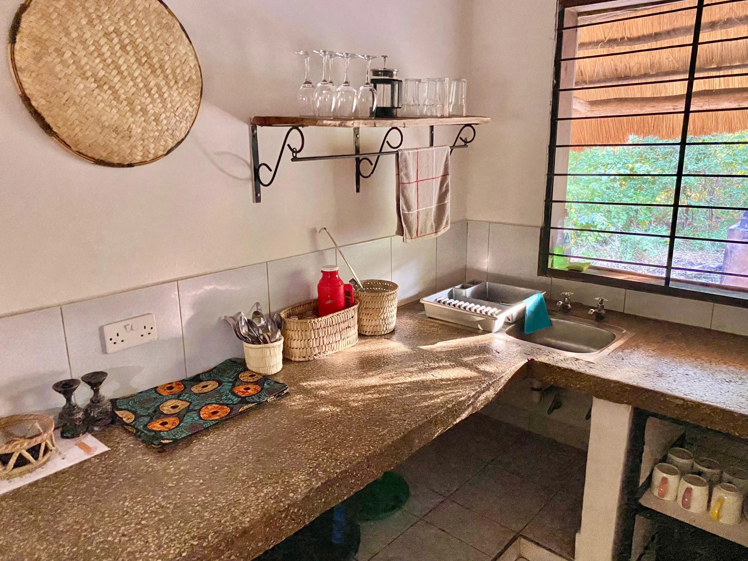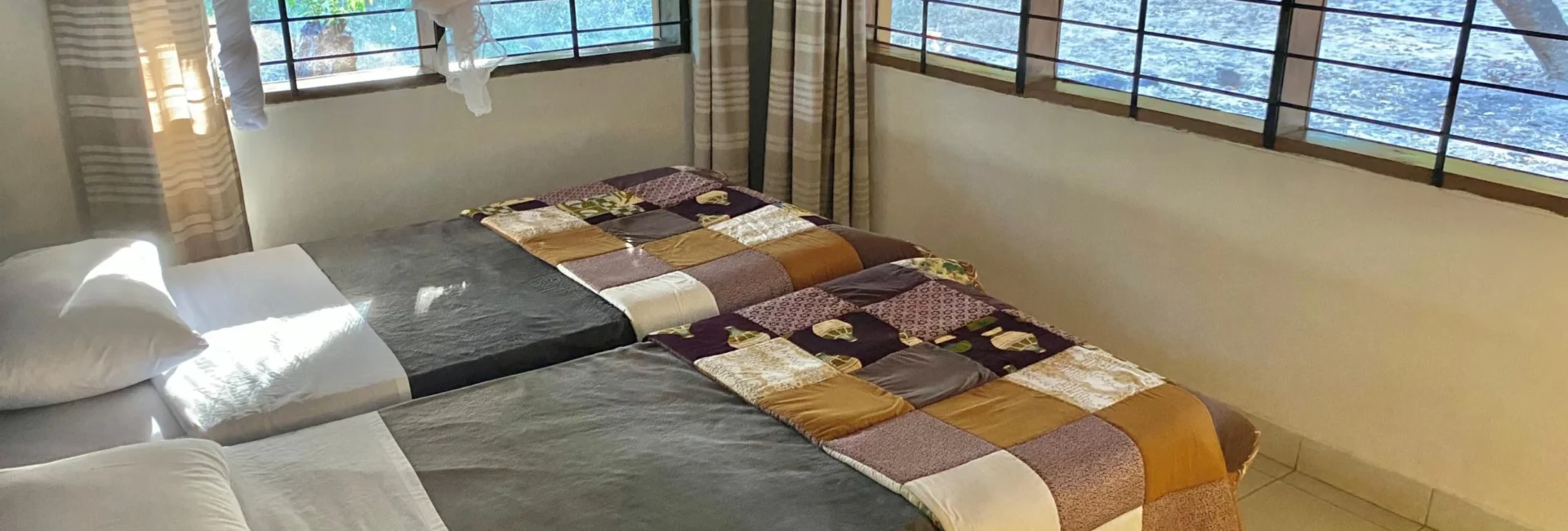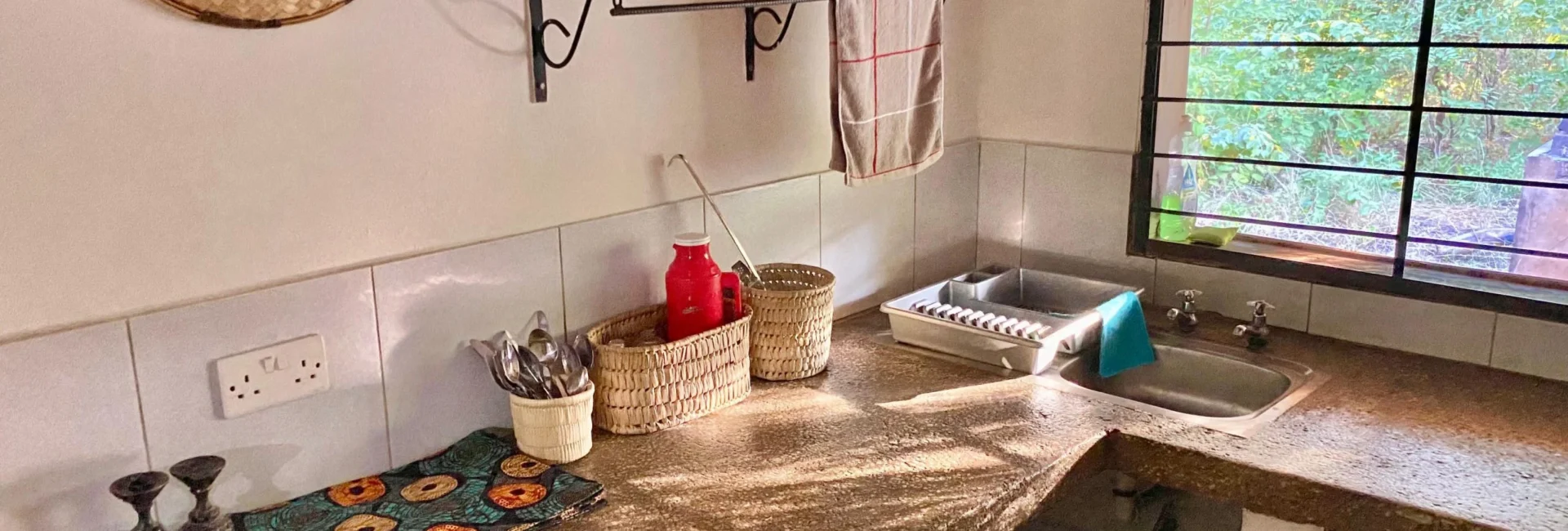 Our bush villas (the ‘Impala’ and ‘Nyala’) are nestled in the middle of the bush. Enjoy the quiet of the forest from your private terrace. Light a cosy camp fire or have a cookout on your braai stand (barbecue). The villas have two twin bedrooms, a spacious bathroom, a kitchenette equipped with basic supplies, and a lounge area. Bed 5 and 6 are large couches in the living room and therefor more suitable for kids. From the villa it is a 15 to 20 minute walk to the reception and restaurant.